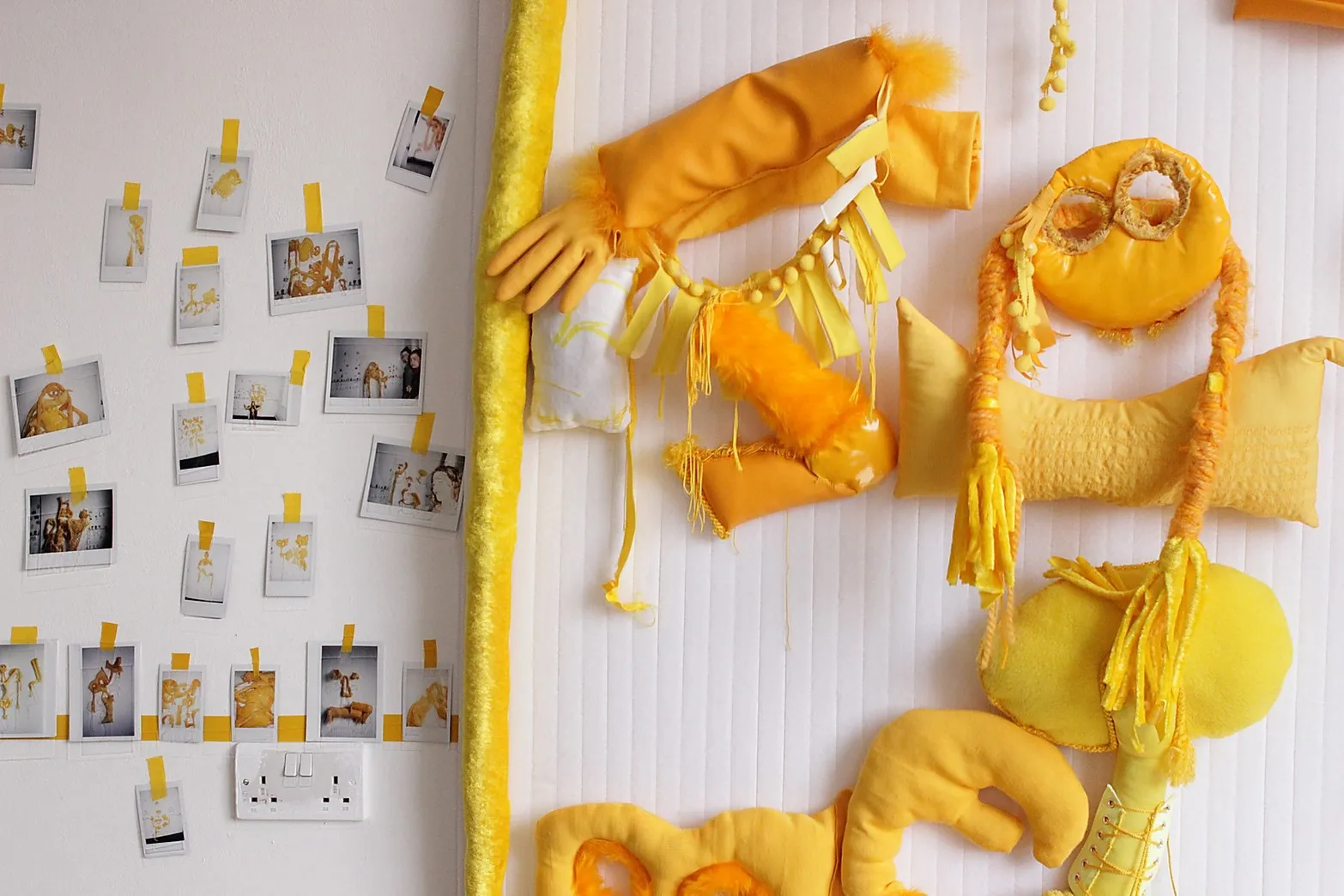 This project operated in Heuston train station (Dublin) prior to the NCAD graduate exhibition. Those who participated created soft sculpture collage on a velcro canvas, and captured it through photography, with the presence of a facilitator. The participants are accredited as the artist, and were invited to see their photographed artwork displayed at the NCAD graduate exhibition.